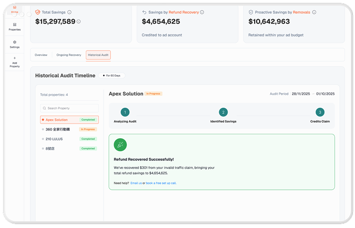 We audit your past 60 days of click data and identify potential savings within a few hours.