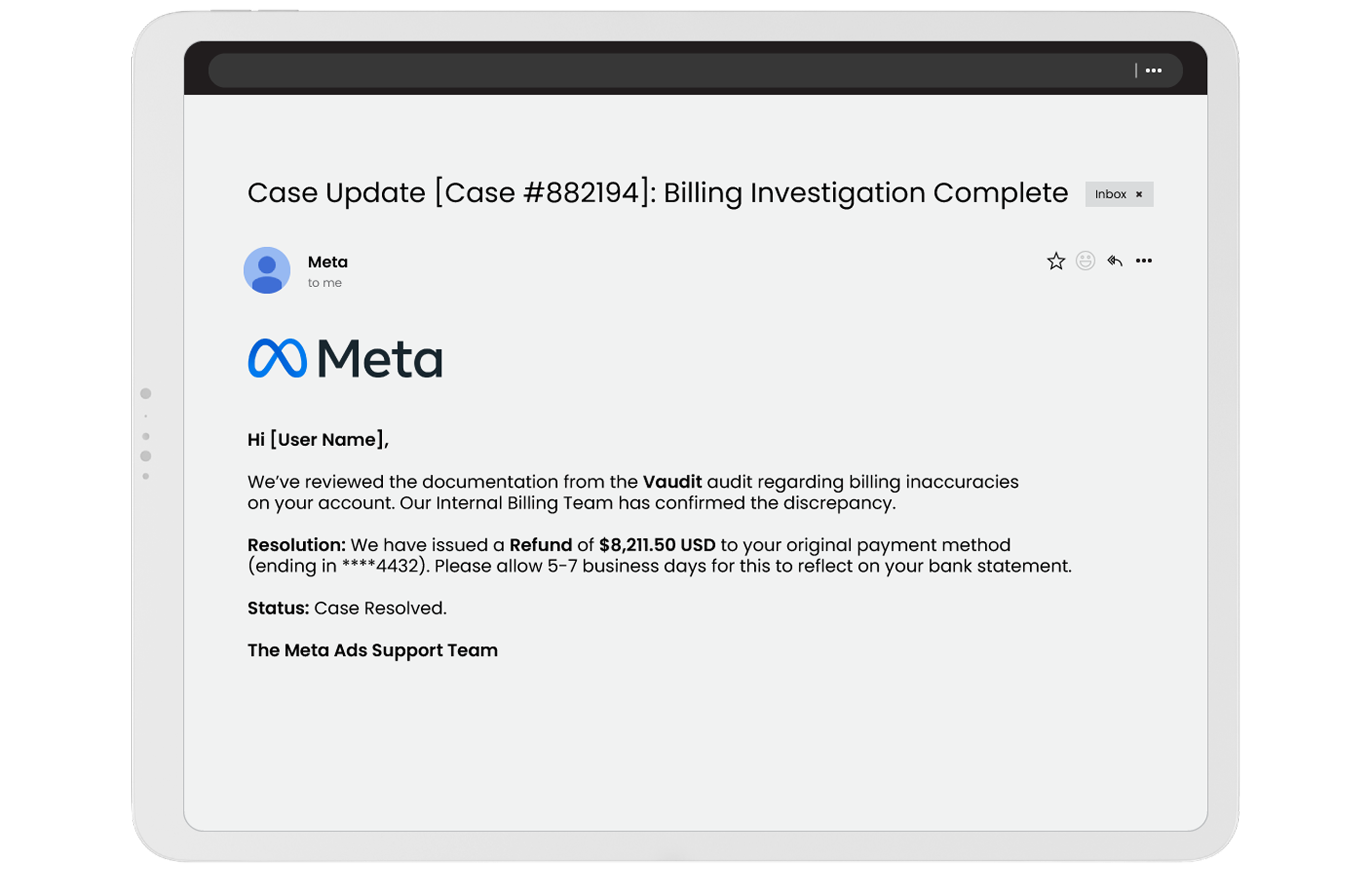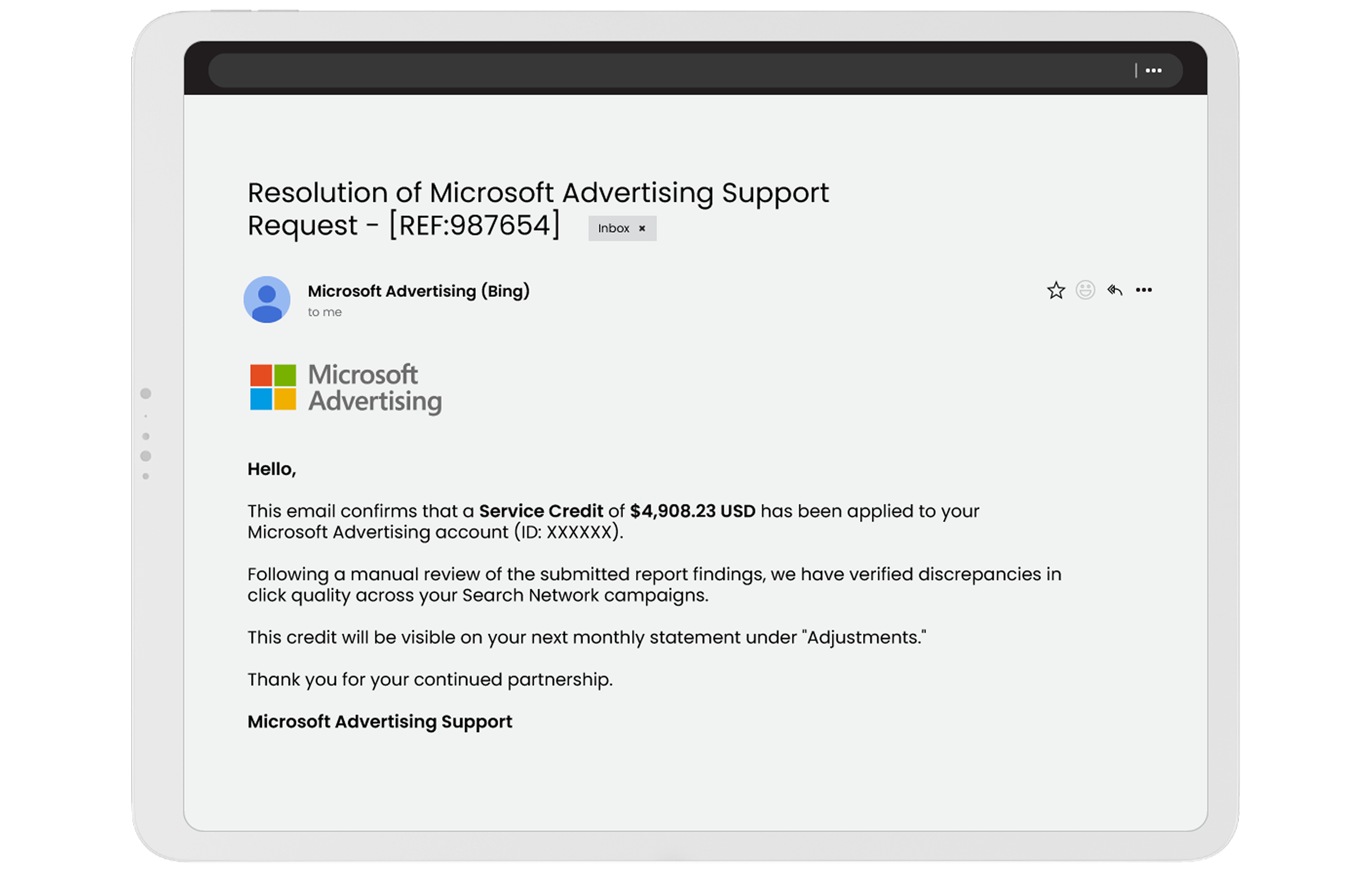 Refunds auto-credited to your ad account.